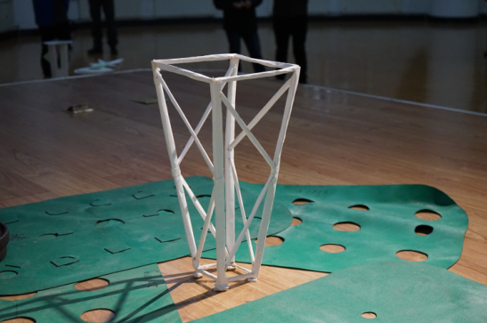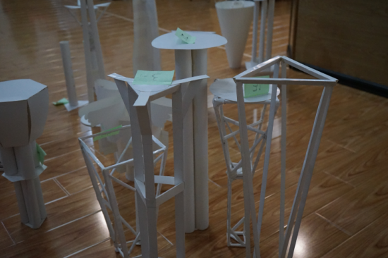 本次结构竞赛的赛题是用白卡纸制作一个“上大下小”的受力结构。参赛同学经过四天的制作,带着自己精心制作的作品和饱满的热情迎接比赛的到来。