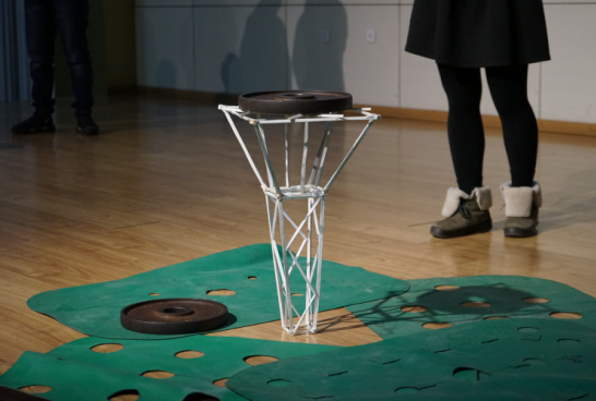 整场比赛分选手阐述、加载实验,评委点评三个环节进行。第一个环节是选手对自己制作的模型的阐述,参赛选手分别从结构选型、构造、特点等方面对作品进行说明,评委老师在仔细考量了模型并听了同学的阐述后,就模型受力、承重、制作等方面存在的问题对选手进行创意评分。下一个环节是模型加载实验,比赛采用静荷载进行模型加载,使用统一荷载值对模型加相应重量5kg的砝码,如果模型能够抵抗该荷载则记为成功,否则失败,然后根据相应公式计算质高比(即模型质量除以模型高度)。每一组加载试验都牵动着选手们的心,也调动起现场观众的好奇,这中间既有成功达到预定荷载值之后的欢呼与庆祝,也有失败后对自己小组被压垮模型的惋惜与不甘。但无论胜负,每位来到现场的同学都从自己用心制作的过程以及老师的指导中获得了丰富的经验和有益的建议。