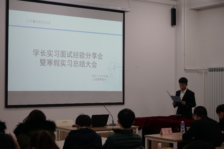 3月17日晚,yl6809永利官网实习经验分享会暨寒假实习总结大会成功举办。为让学生掌握第一手的实习求职技巧和面试经验,提升菁华学子的就业竞争力,土木菁华就业协会邀请实习经验丰富、实力强劲的学长,为大家进行分享。