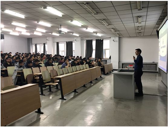 首先,大会邀请魏老师讲话,魏老师直言非常荣幸能出席此次会议,热情地为大家讲述自己近期的所见所感。魏老师通过几个事例给大家警醒和激励,一是考研成绩公布,一些大四学生仍对自身发展发向感到迷茫,二是16级几位学生因挂科学分过多而被迫降级,三是某位研究生同学因无法控制自己的情绪而与他人发生冲突。种种现实触目惊心,魏老师不禁向同学们发出直击心灵的叩问:“你来到大学的目标究竟是什么?”,“怎样才能度过充实的大学时光?”,“如何在国家民族的发展进程中找准自己的位置?”指出每一个同学都应该有自己的奋斗目标。魏老师对同学们关怀至深,最后对同学们寄予厚望,全场掌声雷动。