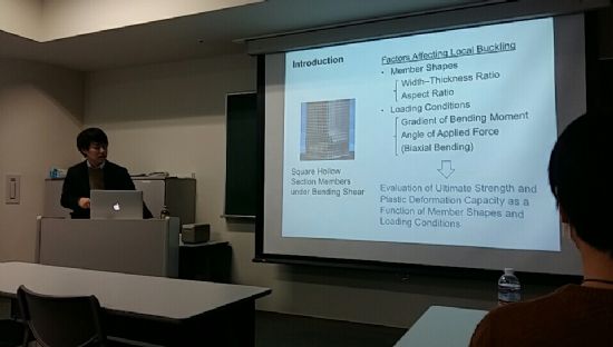 在共同研究的最后一天,交流团成员以及东北大学的同学用一场精彩的学术报告的来展示了各自在共同研究中所获得的成果。东北大学佐藤公亮老师为大家做了有关钢结构的精彩报告,同学们认真聆听,并就相关问题展开了讨论。之后,东北大学的同学展示了他们的研究方向和相关成果。最后,哈工大的学生以研究小组为单位分成两个小组,分别就下击暴流和PLA两个研究方向进行了展示。
