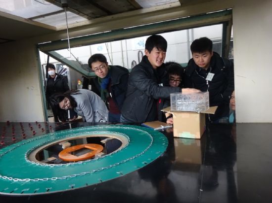 2月28日和3月1日 “樱花科技计划”哈工大土木学院学生交流团与日本东北大学的学生展开了联合研究实验。此次联合研究实验内容主要包括下击风暴(downburst)和PLA(pressure load actuator)。