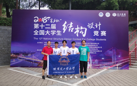 本次竞赛题目为设计与制作承受多荷载工况的大跨度空间结构模型。模型要在8个加载点承受共56kg-64kg的竖向荷载,并同时承受6kg-8kg的变动方向的水平荷载。代表哈工大参赛的我院本科生符洋钰、袁昊祯、彭鑫帅组成的土木菁华代表队,在指导教师邵永松、赵亚丁二位老师的指导下,表现不俗,一举斩获大赛一等奖的好成绩,实现了我校连续三年在该项竞赛上获得一等奖的殊荣!