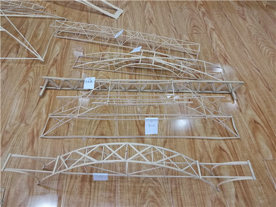本次竞赛的赛题是用竹材制作一桥面模型,模型质量不超过 60 克,并承受住一定荷载,模型跨度越大则得分越高,模型形式任意。