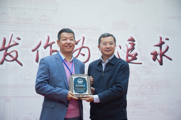校党委书记熊四皓为吕红军校友授予资深名誉校董证书