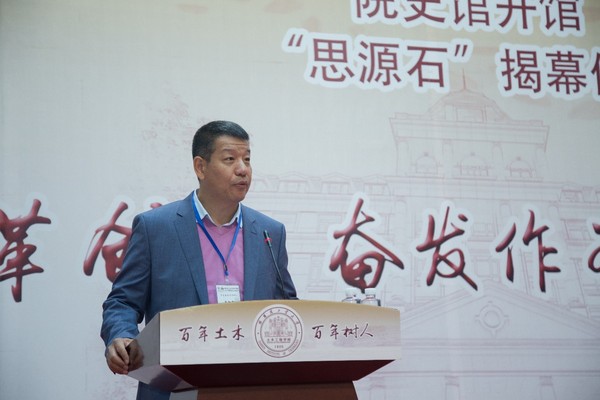 学院党委书记乔世军在揭幕仪式上致辞,讲到哈工大的辉煌是由一代代哈工大人和广大校友汇聚起接续奋斗、同心筑梦的磅礴力量而铸就,他号召广大校友和师生在新百年征程中改革创新、奋发作为、追求卓越,为哈工大新百年建设、土木学院新百年发展做出新的更大贡献。