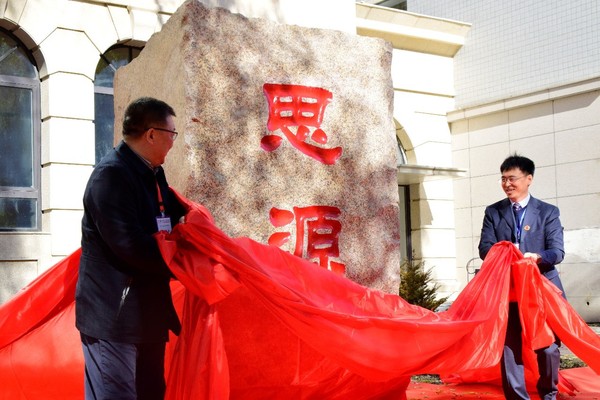 哈工大内蒙古自治区校友会执行会长、82级校友初绍军和yl6809永利官网院长王玉银共同为“思源石”揭幕。“思源石”是由哈尔滨工业大学内蒙古校友会捐赠,“思源”二字由沈世钊院士题词,寓意校友们心系母校、饮水思源,借此表达对哈工大百年校庆暨土木学科创建百年的庆贺。揭幕仪式前初绍军校友作为校友代表致辞。