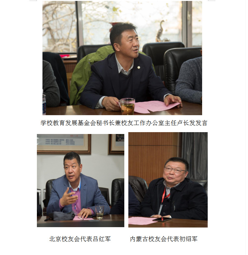 北京校友会代表方东祥、北京建管校友会代表徐韫玺、上海校友会代表张泽林、沈阳校友会代表赵丹、14系校友会代表李春海等校友对校友会工作和发展建设发表了想法和意见,并祝愿各地校友会越办越好。