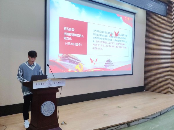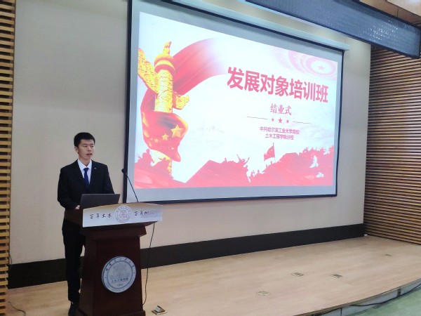 结业式上第一小组学员代表李慧莉、第二小组学员代表张林、第三小组学员代表卓小兰、第四小组学员代表马驰先后回顾了本次培训班的授课内容,分享了自己的体会与成长,主要从习近平总书记贺信内容、学好党章,端正入党动机,做合格党员、新中国70年的光辉历程等方面进行了总结。第三小组的卓小兰同学,把理论公共课的五讲内容做了一个总结,指出理想信念的重要性,作为新时代共产党人需牢记党的初心使命,不断提升自己。同时马驰同学指出作为处于多个一百年交汇的哈工大学子,更应该牢记习近平总书记的嘱托,始终秉承哈工大八百壮士精神,将自身的命运紧密结合到国家发展中。随后第一小组学员代表郝佳林、第二小组学员代表黄朝、第三小组学员代表艾博涛、第四小组学员代表段新超分别汇报了小组关于从抗击疫情看中国特色社会主义制度优势的学习成果并做分享交流。学员们都表示,十多天的发展对象培训班时间虽然不长,但让所有学员都更加深入地学习了党章的历史和内容,作为发展对象要注重政治理论学习;按照党章要求的去做,用党章规范自身。
