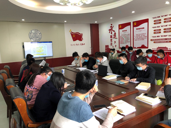 樊少勇带领全体支部书记一同学习了习近平总书记在党史学习教育动员大会上的重要讲话精神,对学校、学院党史学习教育和庆祝建党100周年系列活动方案进行了介绍,为各支部下发工作任务清单并逐一做了讲解,对党史学习和重点党建活动等工作做了强调和指导。
