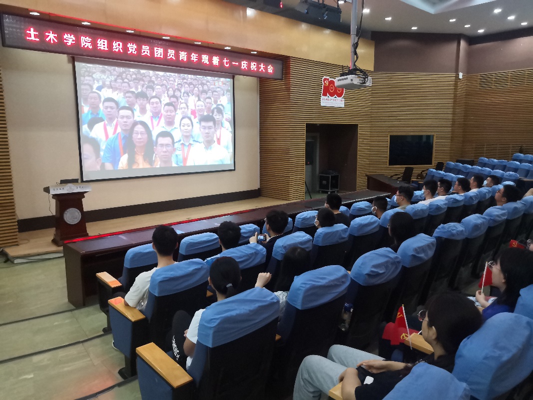 庆祝中国共产党成立100周年大会7月1日上午8时在北京天安门广场隆重举行。中共中央总书记、国家主席、中央军委主席习近平发表重要讲话。土木学院党委组织学院师生在报告厅、会议室、教研室、教室、公寓等以集中或个人方式收看大会实况直播,共同见证伟大历史时刻。