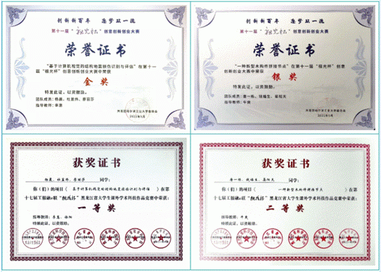 土木学院杨晨、杜显炜、廖丽莎参赛队伍的项目《基于计算机视觉的结构地震损伤识别与评估》和唐一栋、钱福生、晏阳天参赛队伍的项目《一种新型木构件拼接节点》分别获得“祖光杯”金奖和银奖,推介至“挑战杯”省赛后,经过通过优秀项目推介会、现场评审答辩、评委现场问辩等环节分别获省一等奖和省二等奖。