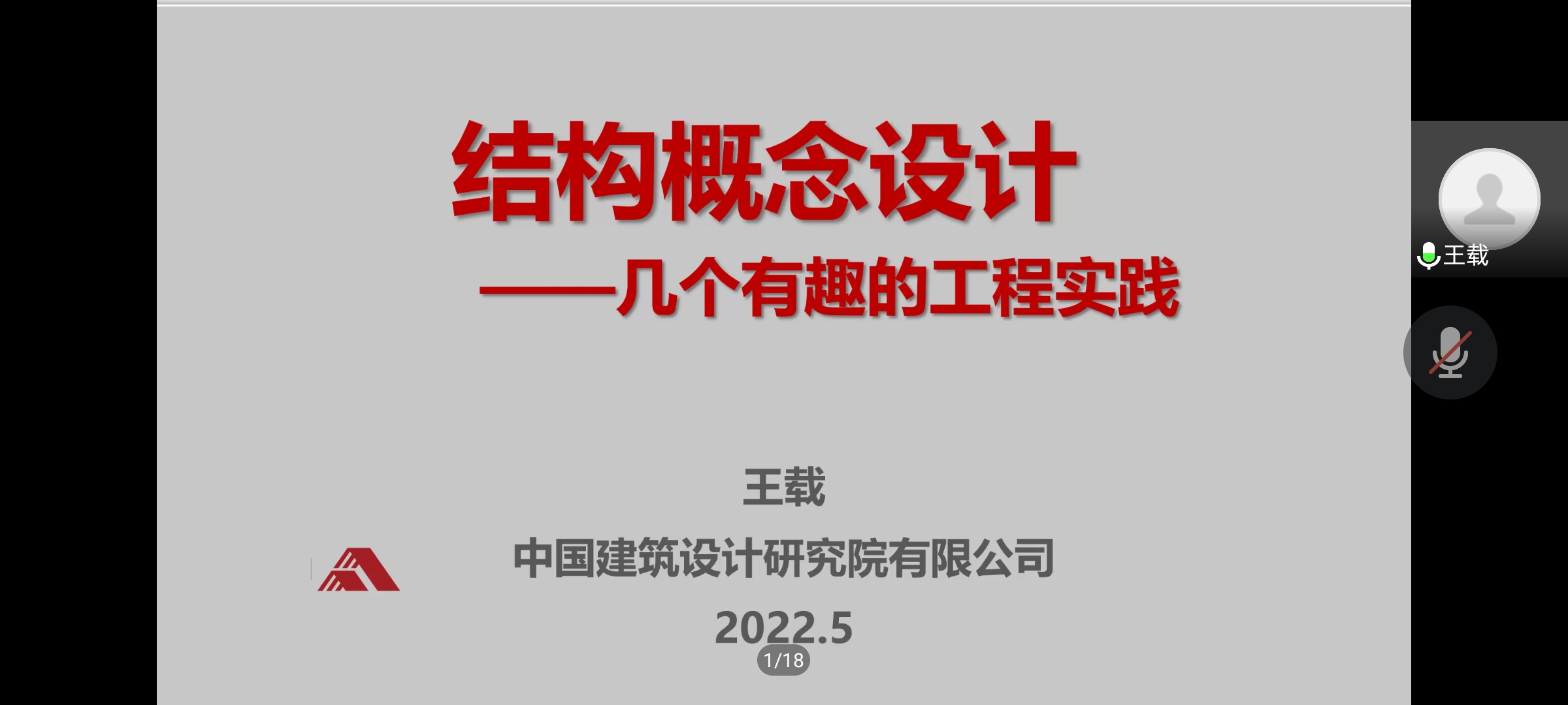 王载以“结构概念设计——几个有趣的工程实践”为主题主讲报告,讲座主要围绕南京园博园未来花园植物园、西宁双寨物流加油站、北京八达岭太阳能热发电实验电站吸热塔、新机场高速廊坊站四个工程实例展开。王载指出,结构设计没有唯一解,探索就是为了寻求最优,结构的概念设计是总体构思阶段,将技术知识概念化的过程。