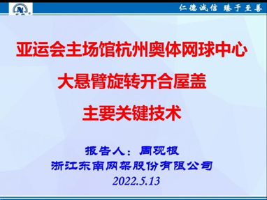 周观海以亚运会主场馆杭州奥体网球中心为例,向同学们讲解了大悬臂旋转开合屋盖结构目前存在的难题以及主要的关键技术,主要内容为对前期奥体网球中心项目的概况和对屋盖结构组成的详细介绍。