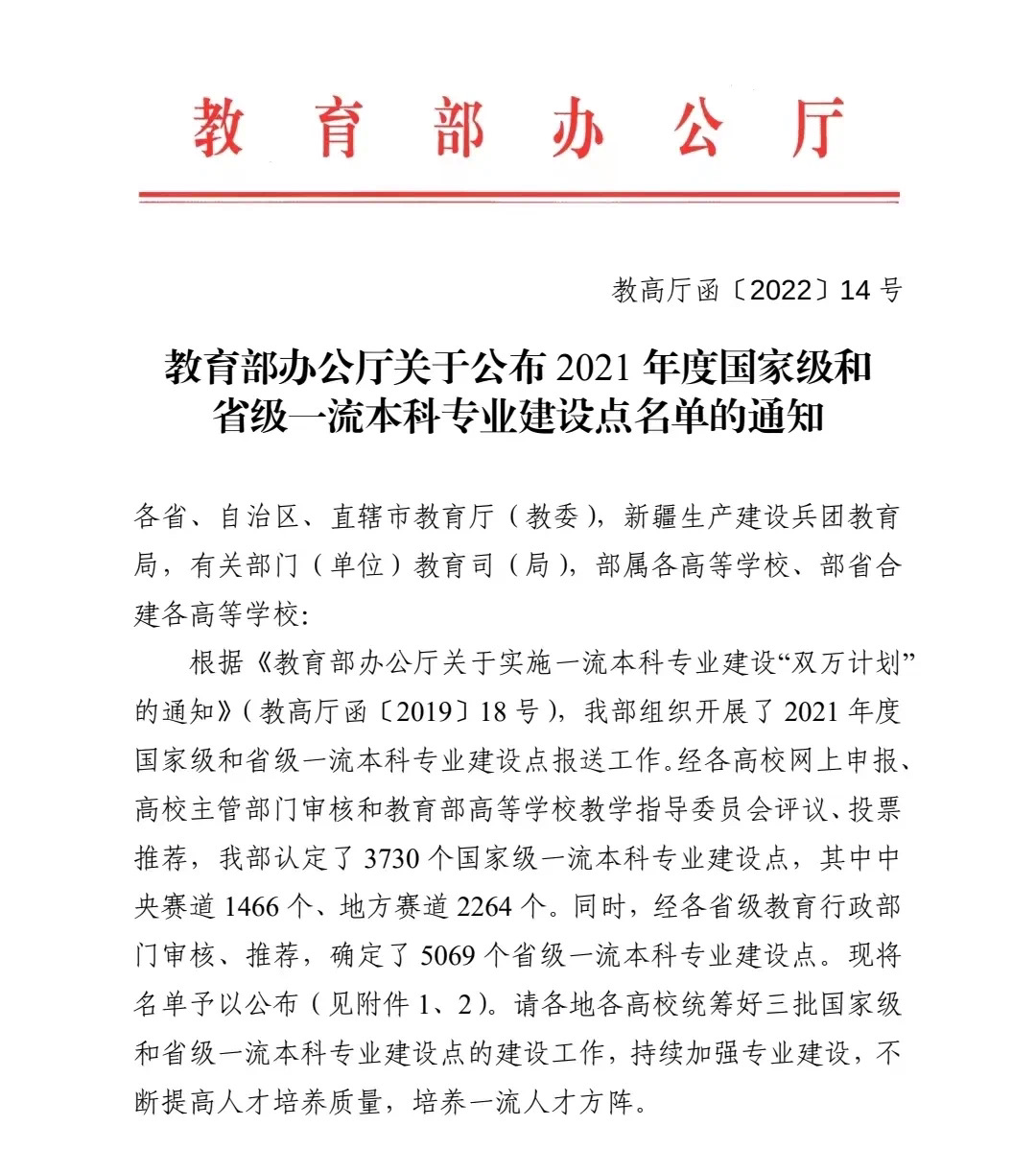 近日,教育部发布了《教育部办公厅关于公布2021年度国家级和省级一流本科专业建设点名单的通知》(教高厅函〔2022〕14号),其中yl6809永利官网城市地下空间工程专业,新获批国家级一流本科专业建设点。目前,yl6809永利官网现共有4个本科专业,其中土木工程、工程管理、城市地下空间工程3个专业为国家级一流本科专业建设点,智能建造专业为新工科专业。