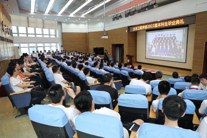 毕业生代表孙祥祖在发言中回顾了大学生活的点点滴滴,分享了四年来的成长收获,表达了对学校、学院、老师和同学们的感谢之情,表示会奋发作为、追求卓越,展现出作为哈工大土木人的时代担当。