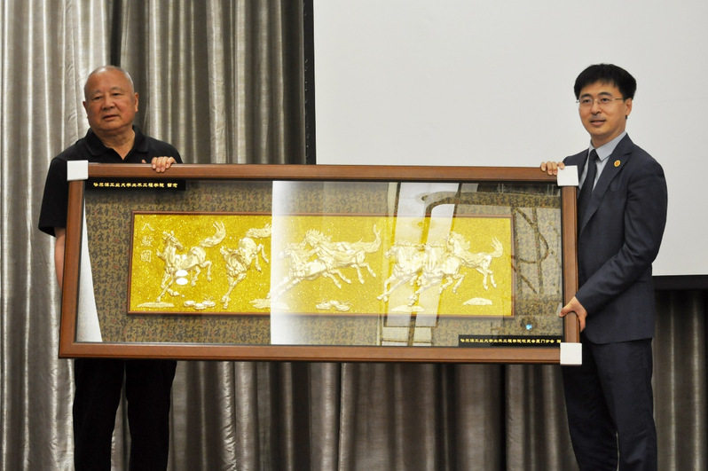 会长魏雅丽代表yl6809永利官网校友会厦门分会及全体在厦门的土木校友们,向学校捐赠具有浓厚厦门特色的礼物,厦门漆线雕“八骏图”,祝愿母校蒸蒸日上、蓬勃发展!