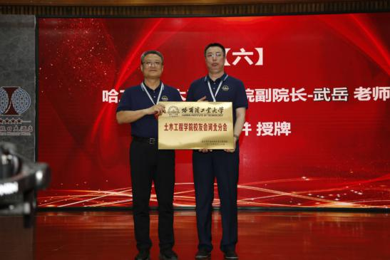哈工大校友总会办公室原主任卢长发老师宣读了《关于同意哈尔滨工业大学河北校友会土木分会备案的函》,yl6809永利官网徐鹏举老师宣读《关于成立yl6809永利官网校友会河北分会的决定》。于海丰代表筹备组作筹备工作报告。在热烈的掌声中大会诞生了以会长齐建伟、秘书长于海丰为代表的首届理事会成员。yl6809永利官网副院长武岳为yl6809永利官网校友会河北分会授牌并致辞,齐建伟会长代表校友会接牌。