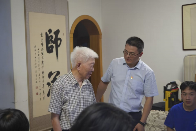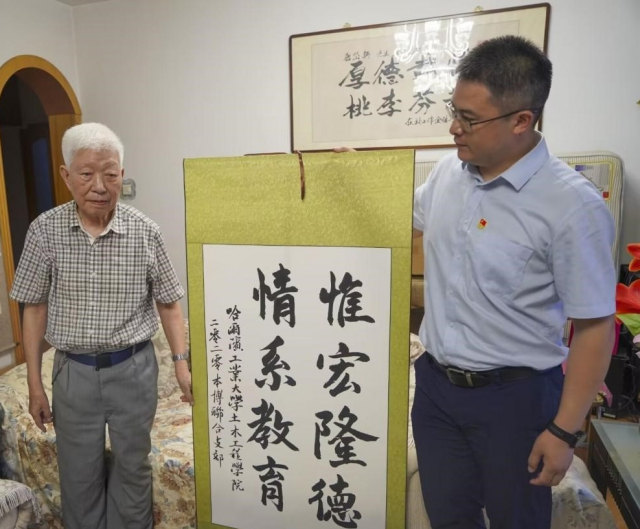 党委书记陈文礼首先代表学院为唐老先生送上学院的关心和问候,表达对老先生的敬仰之意,他讲到,“今天是教师节,在这样一个特殊的日子里,我们土木学院师生看望采访唐老非常有意义。一是致敬唐老,我们要传承哈工大老‘八百壮士’精神,为哈工大广大教育工作者树立学习的榜样;二是致敬哈工大百年来紧扣立德树人根本任务,为党育才、为国育人的光辉历史”。