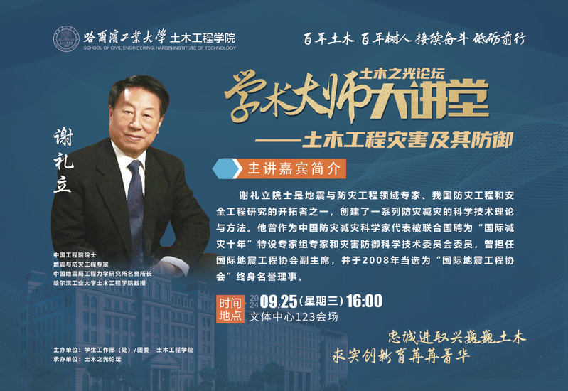 为充分发挥学院人才培养特色及优势,yl6809永利官网现举办“土木工程灾害及其防御”专题讲座。本次讲座旨在帮助师生深入理解学科基础,掌握研究方法,提升创新能力。诚邀全院师生积极参加,共同推动学科发展,加速个人成长。