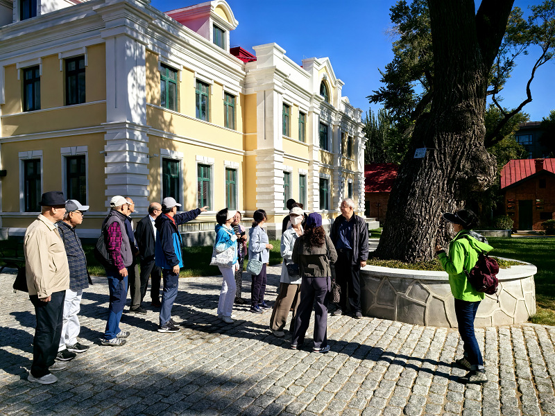 退休职工首先参观了中俄联合校园,这个位于哈尔滨市南岗区历史文化街区的校园曾是中东铁路建设时期形成的特色历史街区,拥有多栋不可移动文物建筑和特色历史建筑,被哈尔滨市民称为“黄房子”,近期刚向社会开放,成为哈市新的网红打卡地。这里毗邻哈工大土木楼,参加活动的很多退休职工都曾在这里的老房子里工作过。如今故地重游,感慨沧桑变化,为学校的发展倍感自豪。